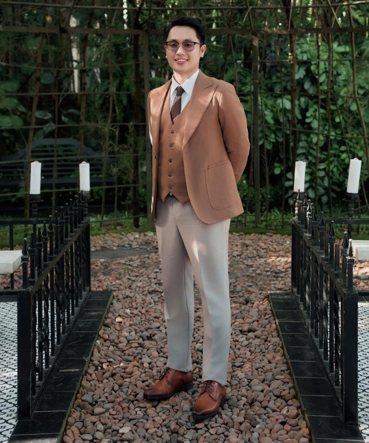 Chú rể mang dáng vẻ điềm tĩnh, vững vàng cùng một trái tim ấm áp . Chú rể là một người yêu công việc . Còn tình yêu mà chú rễ hướng đến cũng là Gia đình và anh cố gắng từng ngày để có thể là điểm tựa vững chắc và an toàn